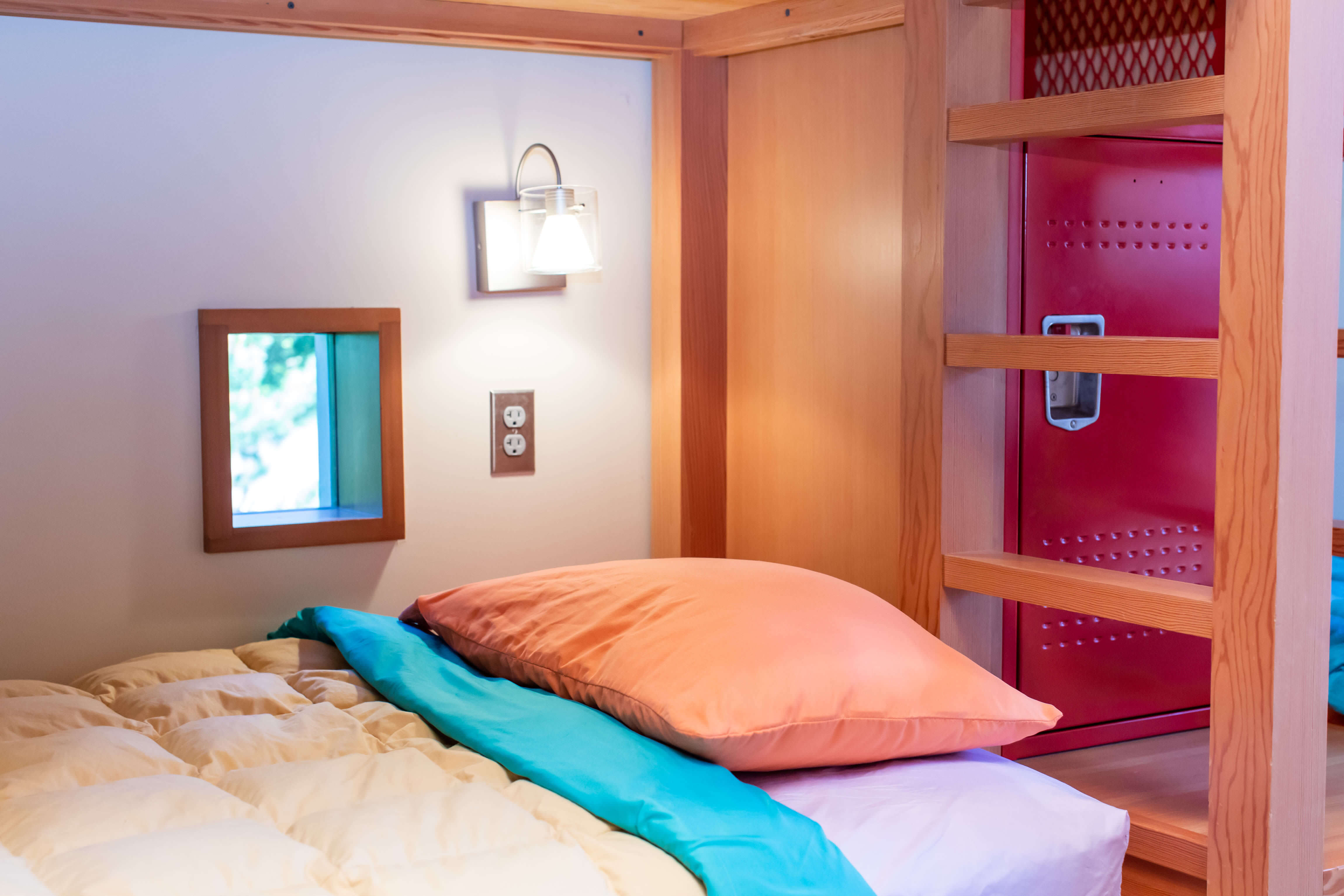 2 king beds, 1 queen bed, 5 bunk beds. High-end mattresses wrapped in luxury linens.