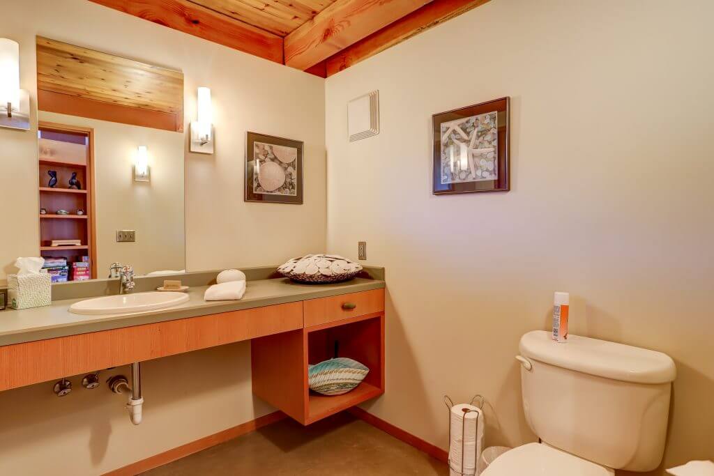 - Architectural Design: Clear-grain fir doors and trim, mahogany counters and walls, and open-beamed ceilings all make this a one-of-a-kind beach retreat.