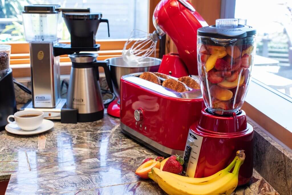 - Chef’s Kitchen: Prepare your meals with ease in a chef’s kitchen that boasts Buffalo granite counters, high-end stainless steel appliances, and three dishwashing drawers. Our guests love that everything they need to cook with is available.