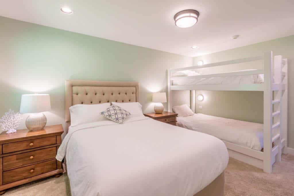 2 King beds, 3 queen beds, 2 bunk beds, 2 sleeper couches